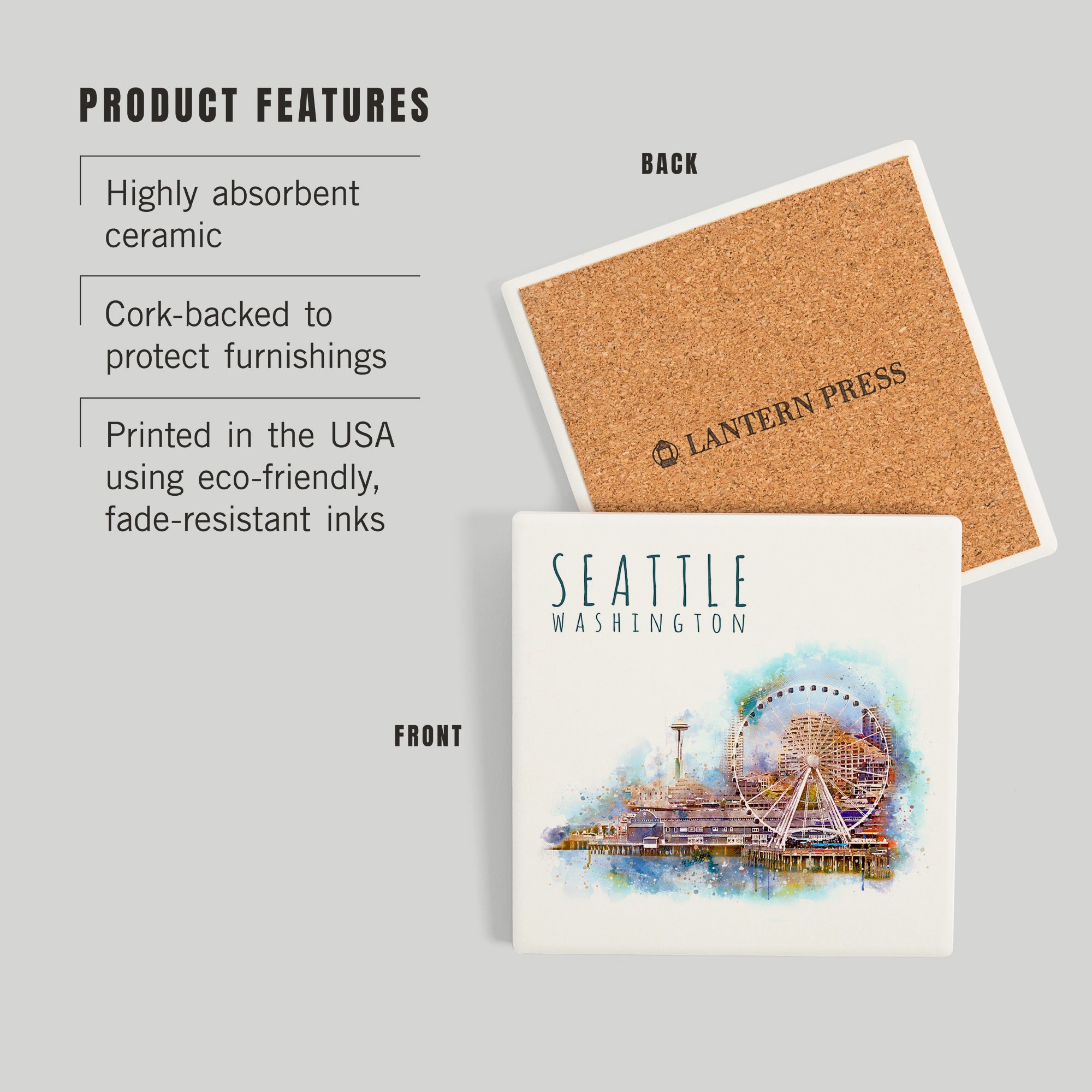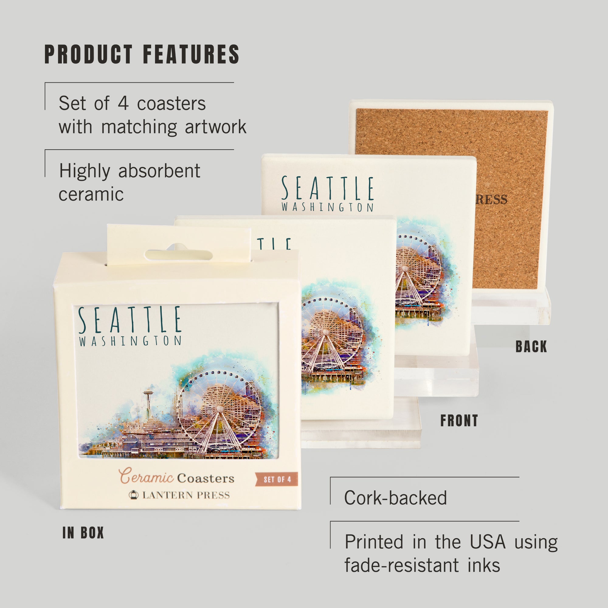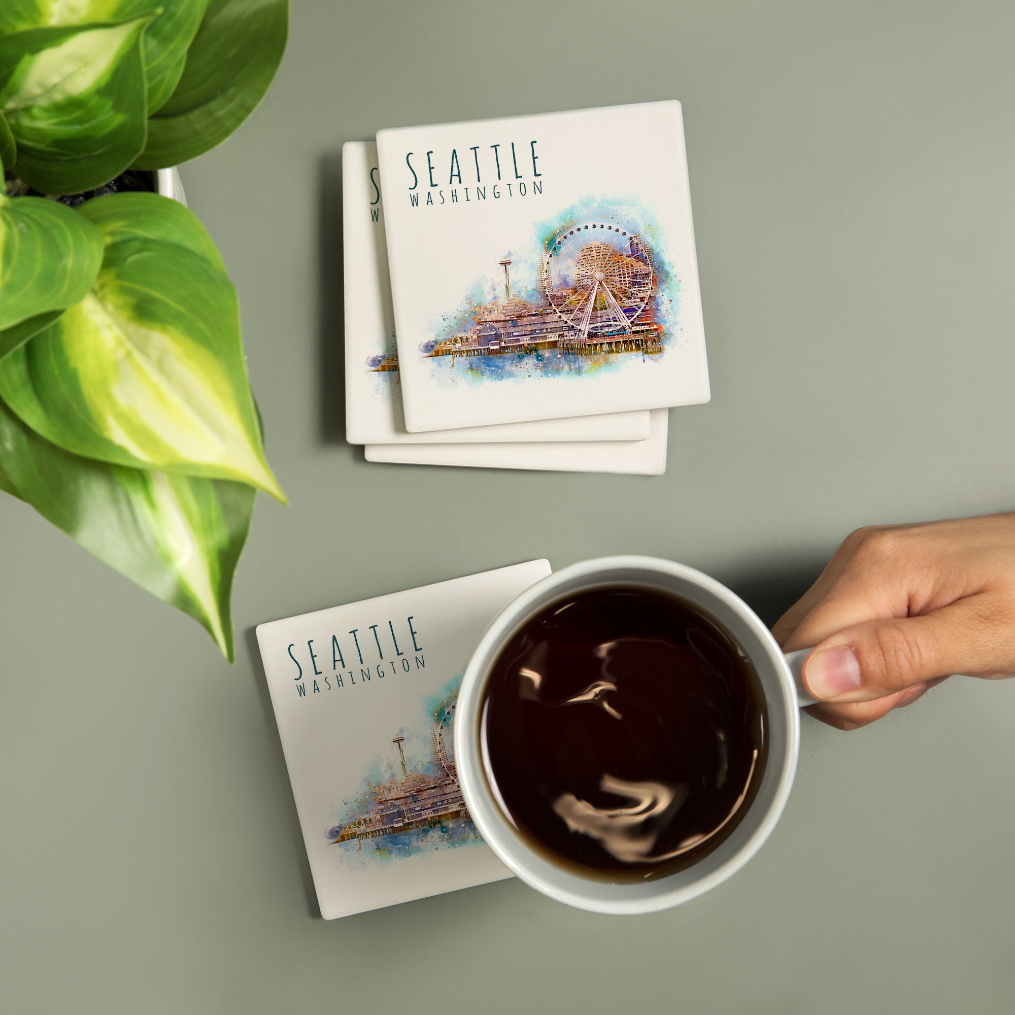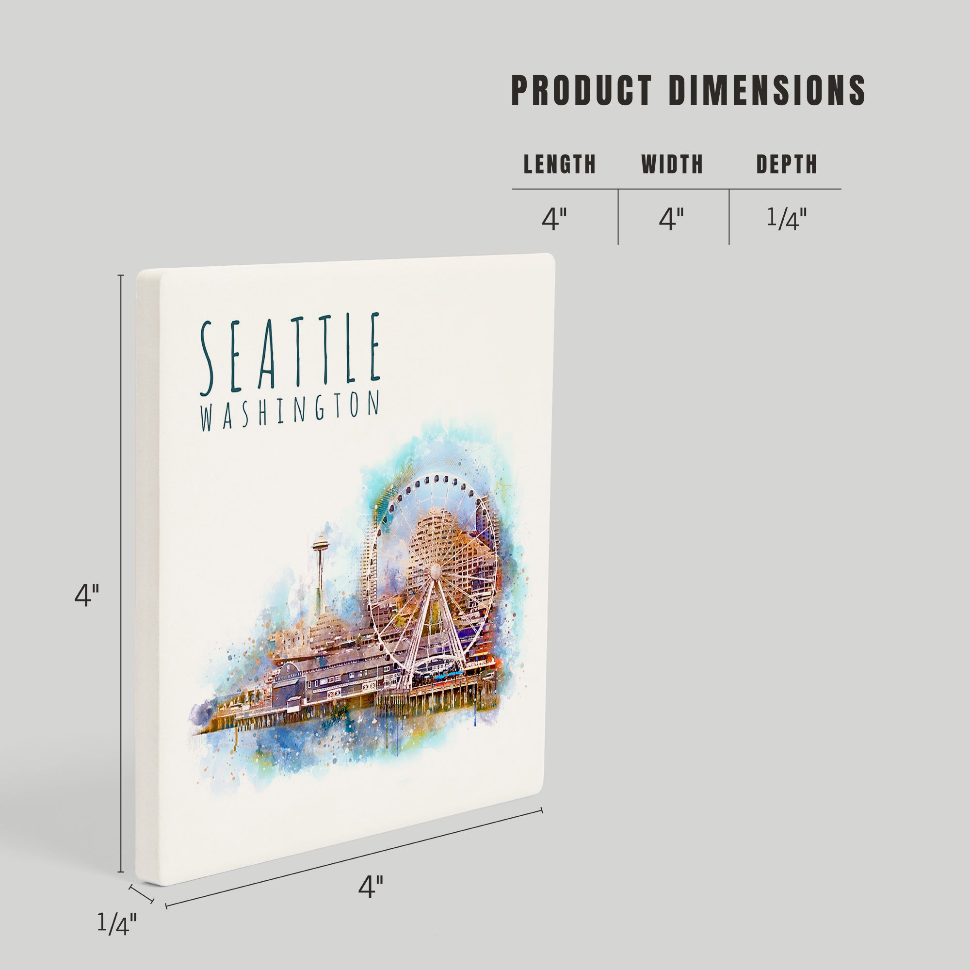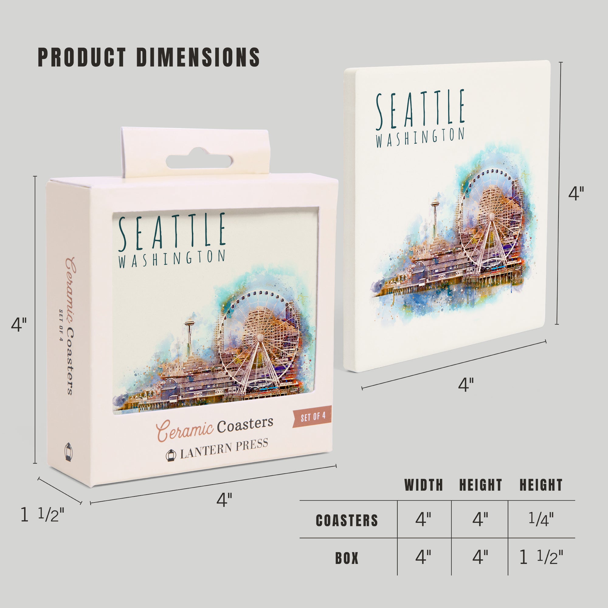 Seattle Skyline, Ferris Wheel, Watercolor, Coasters