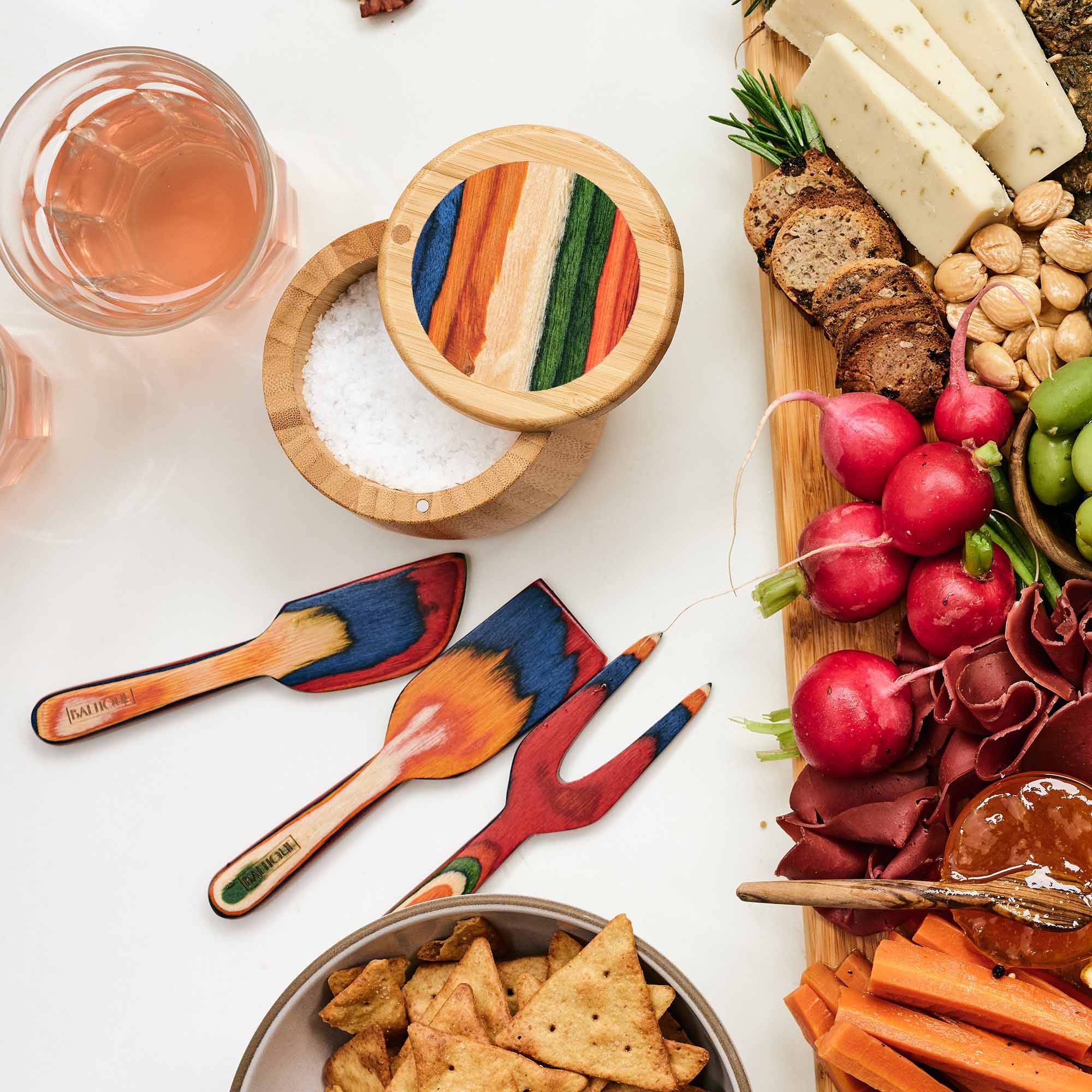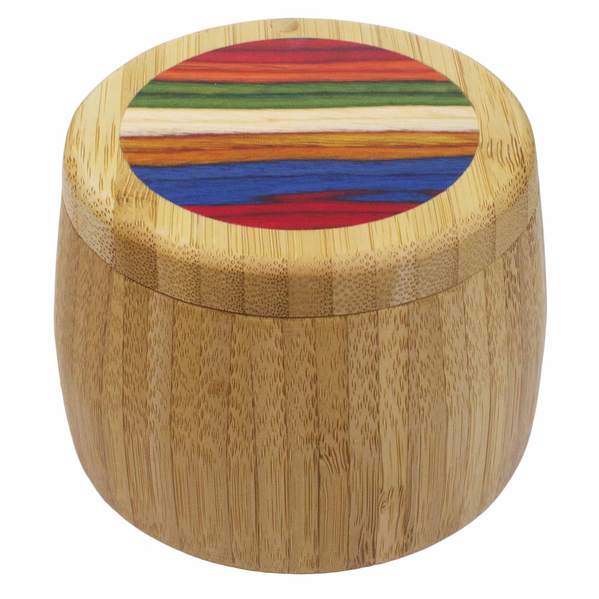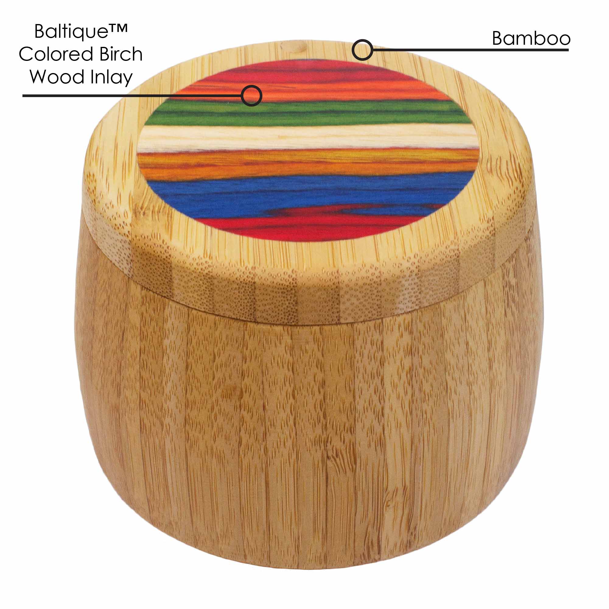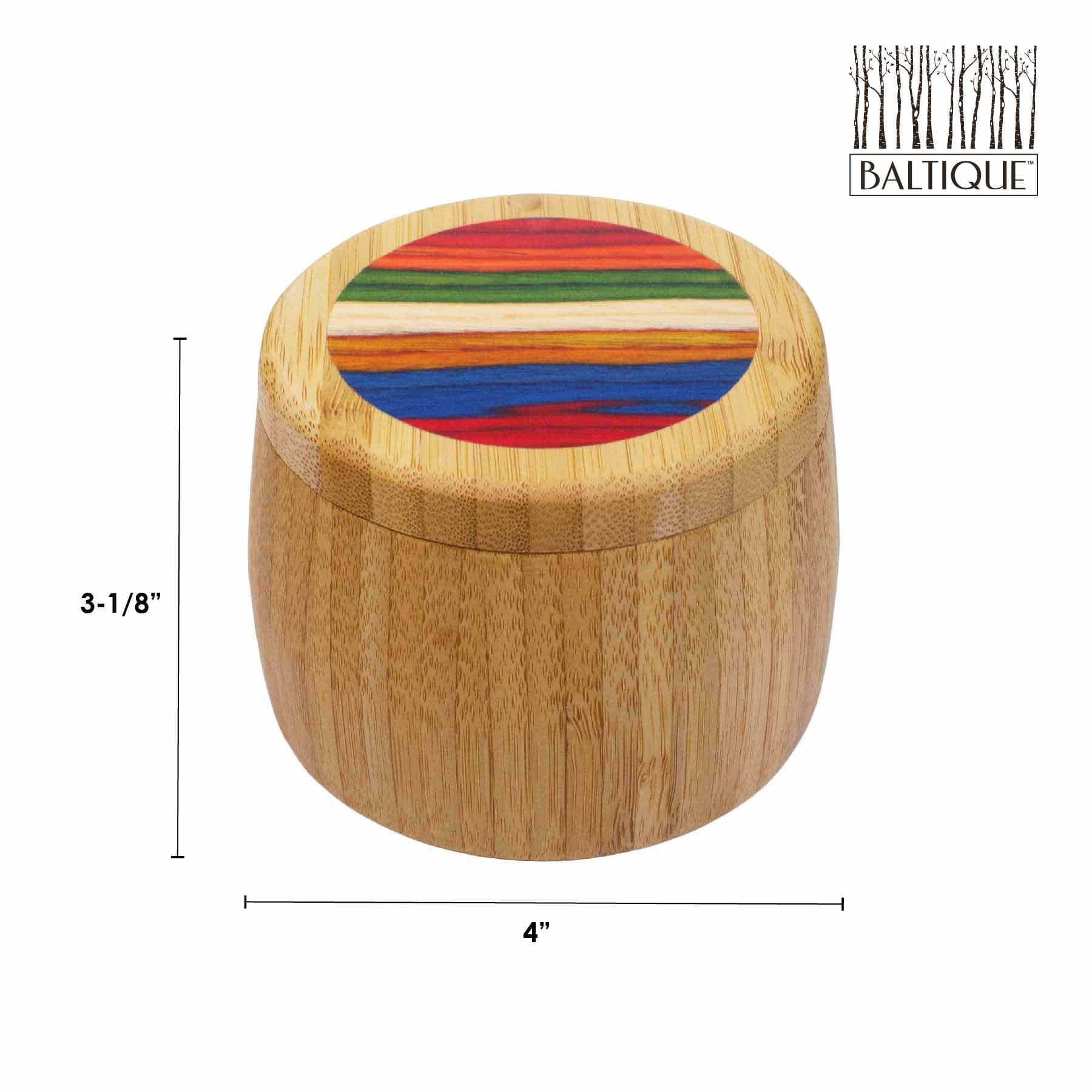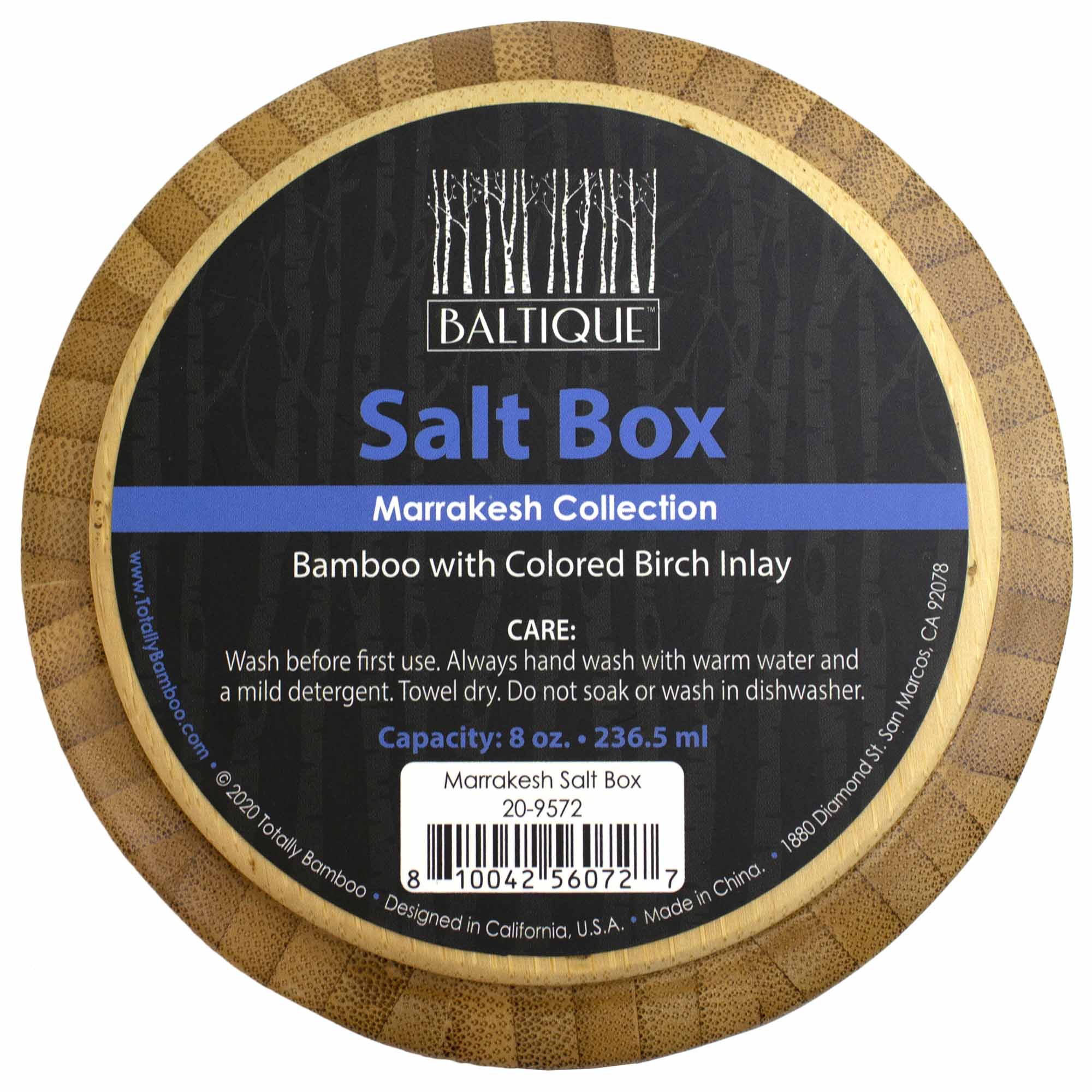 Flavorful cooking is at your fingertips with our Baltique® Marrakesh Collection Salt Cellar! This beautifully crafted bamboo box features a gorgeous inlay of Baltique® Marrakesh birch wood in the lid and is ideal for storing up to 8 ounces of salt, herbs, spices or seasonings in the kitchen. The colorway was inspired by the bright and colorful marketplaces of Morocco. The ingenious magnetic lock and swiveling lid design makes it easy for busy cooks to grab a pinch of seasoning with just one hand. It's great outside the kitchen too: use it to store jewelry, office supplies, knickknacks and more!