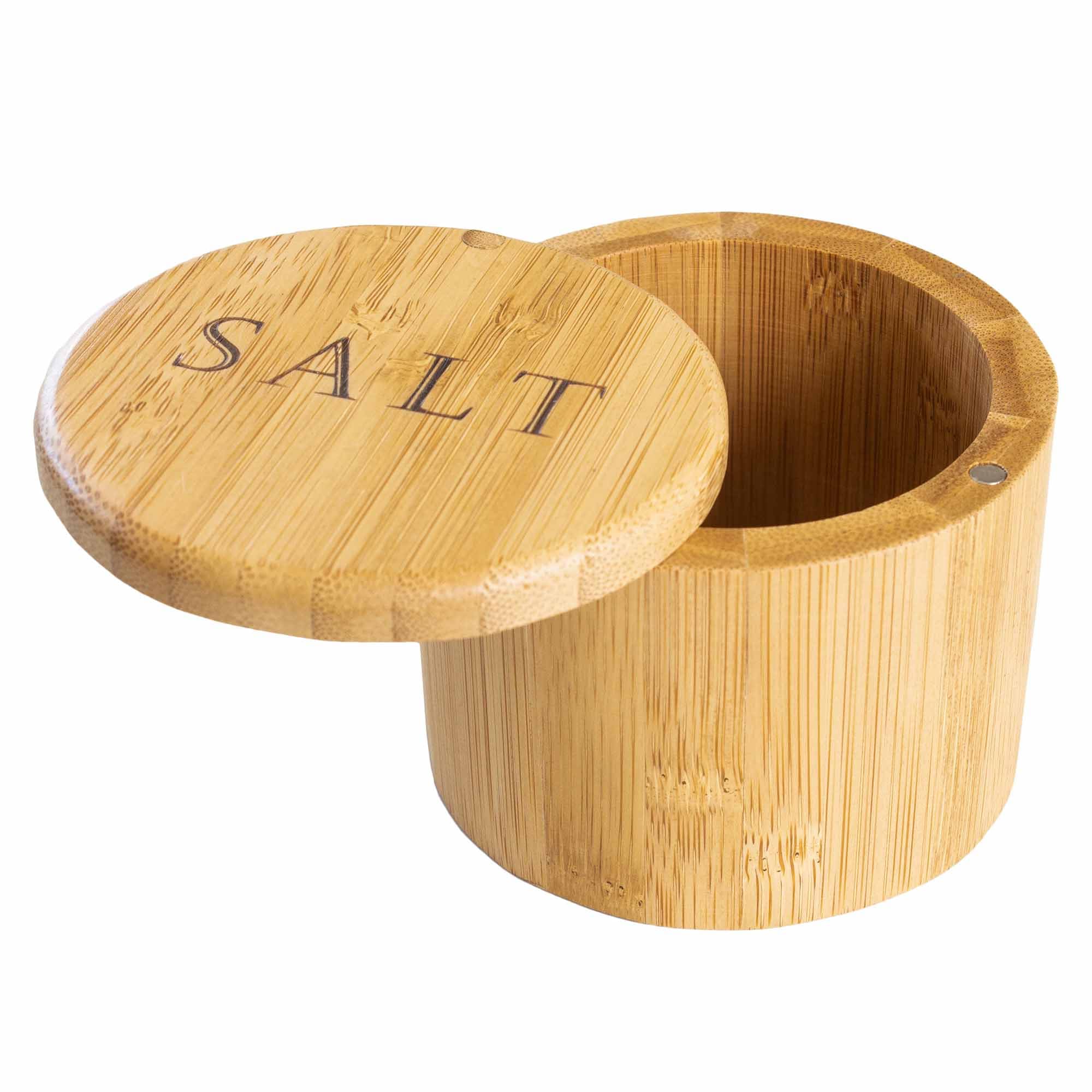 Flavorful cooking is at your fingertips with the "Salt" Engraved Salt Cellar! This beautifully crafted salt cellar is an ideal way to store up to 6 ounces of salt, herbs, spices or seasonings in the kitchen. The ingenious magnetic lock and swiveling lid design makes it easy for busy cooks to grab a pinch of seasoning with just one hand. The lid features a laser engraving of "Salt", so there's no need to wonder what's in the box. It's great outside the kitchen too: use it to store jewelry, office supplies, knickknacks and more!