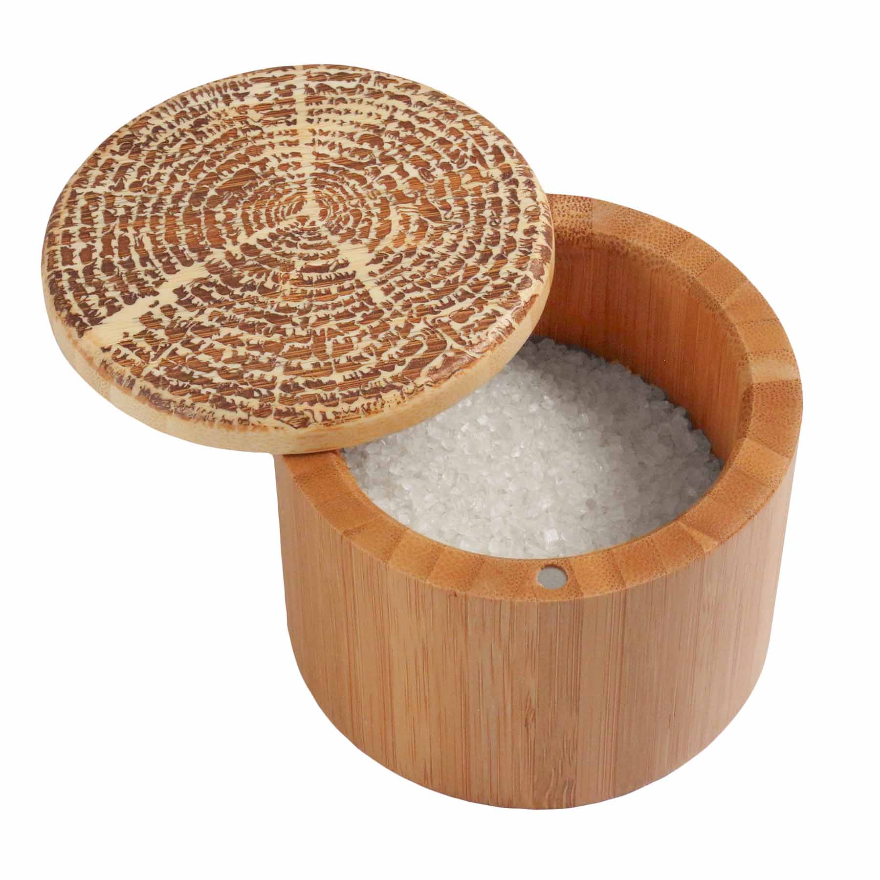 Flavorful cooking is at your fingertips with the "Tree of Life" Engraved Salt Cellar! This beautifully crafted salt cellar is an ideal way to store up to 6 ounces of salt, herbs, spices or seasonings in the kitchen. The ingenious magnetic lock and swiveling lid design makes it easy for busy cooks to grab a pinch of seasoning with just one hand. The lid features a breathtaking "Tree of Life" engraving that appears to be the rings of a tree, but upon a closer look you'll see it's actually a number of endangered animal species. It's great outside the kitchen too: use it to store jewelry, office supplies, knickknacks and more!
